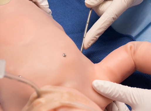 - Ділянки для дренування плевральної порожнини мають кісткові орієнтири, що пальпуються, реалістичну шкіру для розрізу і накладення швів, виділення крові, звук розриву плеври і дренування рідини