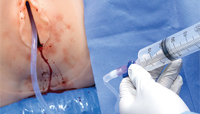 • Післяпологовий живіт з кровотечею матки та ємністю 1 літр полегшує перехід від симуляції пологів до післяпологового догляду